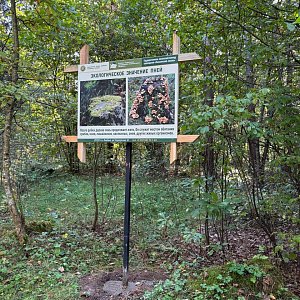 * Интересно и детям, и взрослым: На всем пути стоят таблички с фактами о лесе. Теперь можно точно узнать, чем сосна отличается от ели!