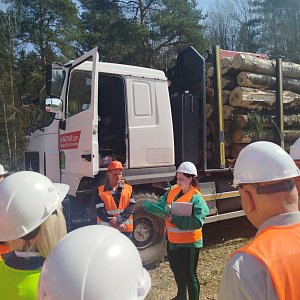 Участники семинара по охране труда переехали на делянку, где обсудят основные требования к складированию лесоматериалов, осмотрят перечень документов, которые при себе должен иметь водитель при вывозке леса, укомплектованность лесовоза к рейсу и др.