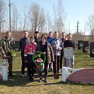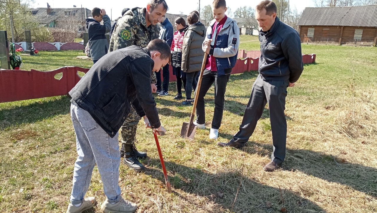 Не стоит забывать о воинских захоронения. С ребятами из Велешковичской СШ дополняли, созданную ими пару лет назад, небольшую аллею из сосен.