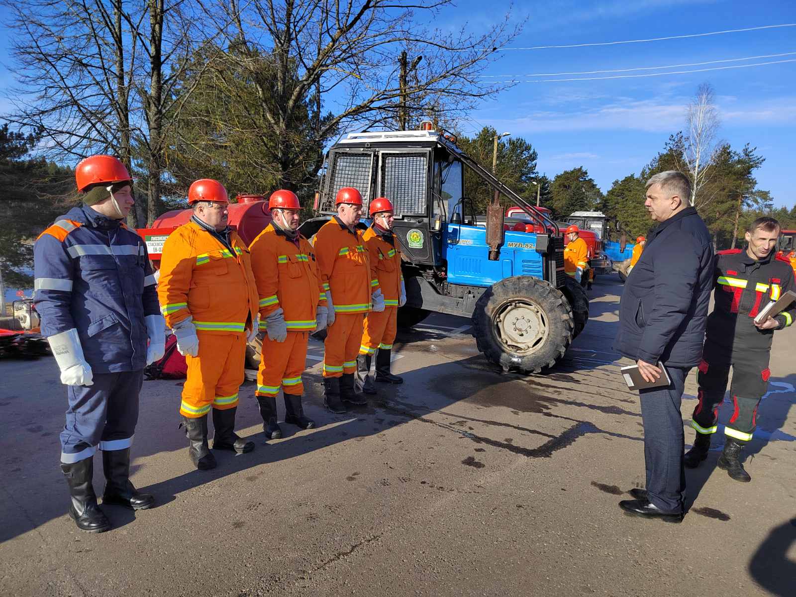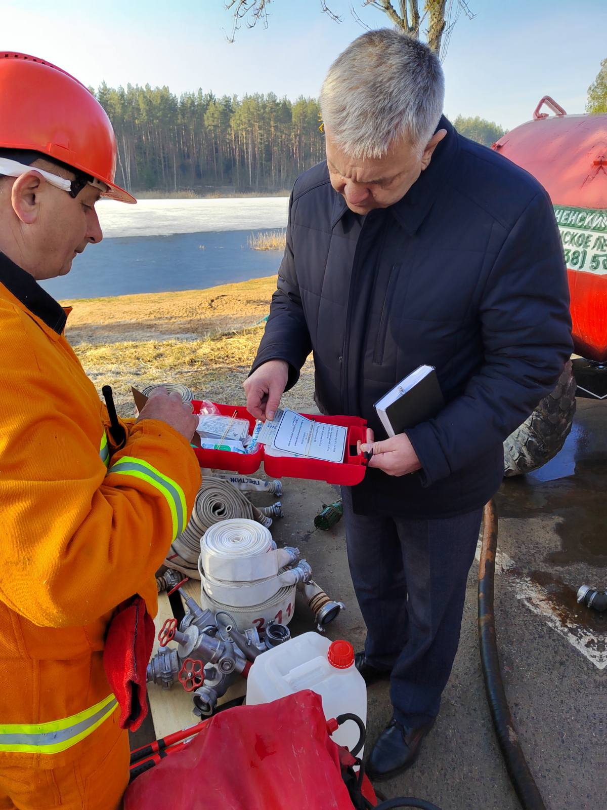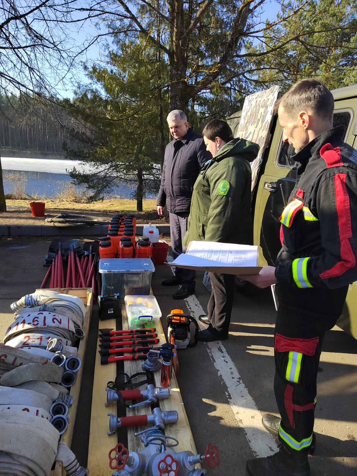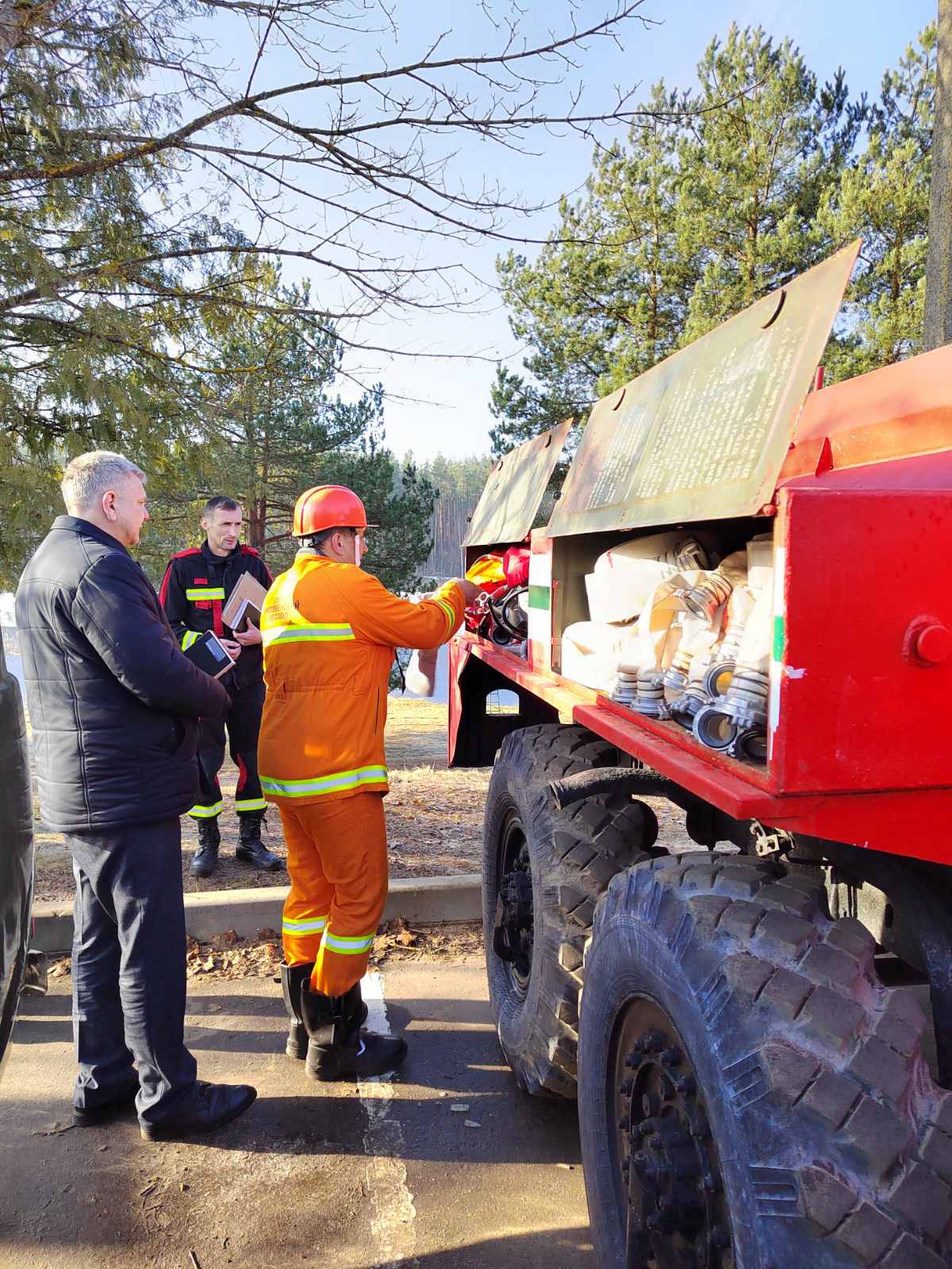 Была проверена техника (автомобили, трактора, бочки для воды) и инвентарь (мотопомпы, пожарные рукава, ранцы, бензопилы и многое другое).