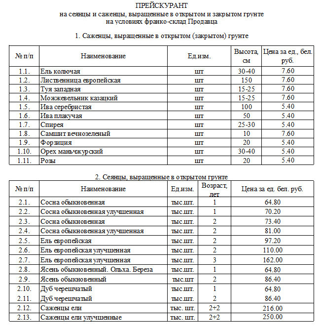 Лиозненский лесхоз предлагает для реализации декоративный посадочный материал для озеленения и ландшафтного дизайна.