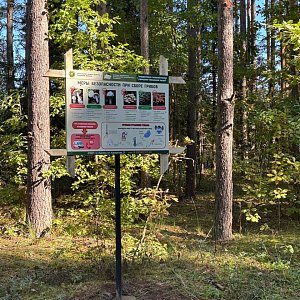 * Интересно и детям, и взрослым: На всем пути стоят таблички с фактами о лесе. Теперь можно точно узнать, чем сосна отличается от ели!