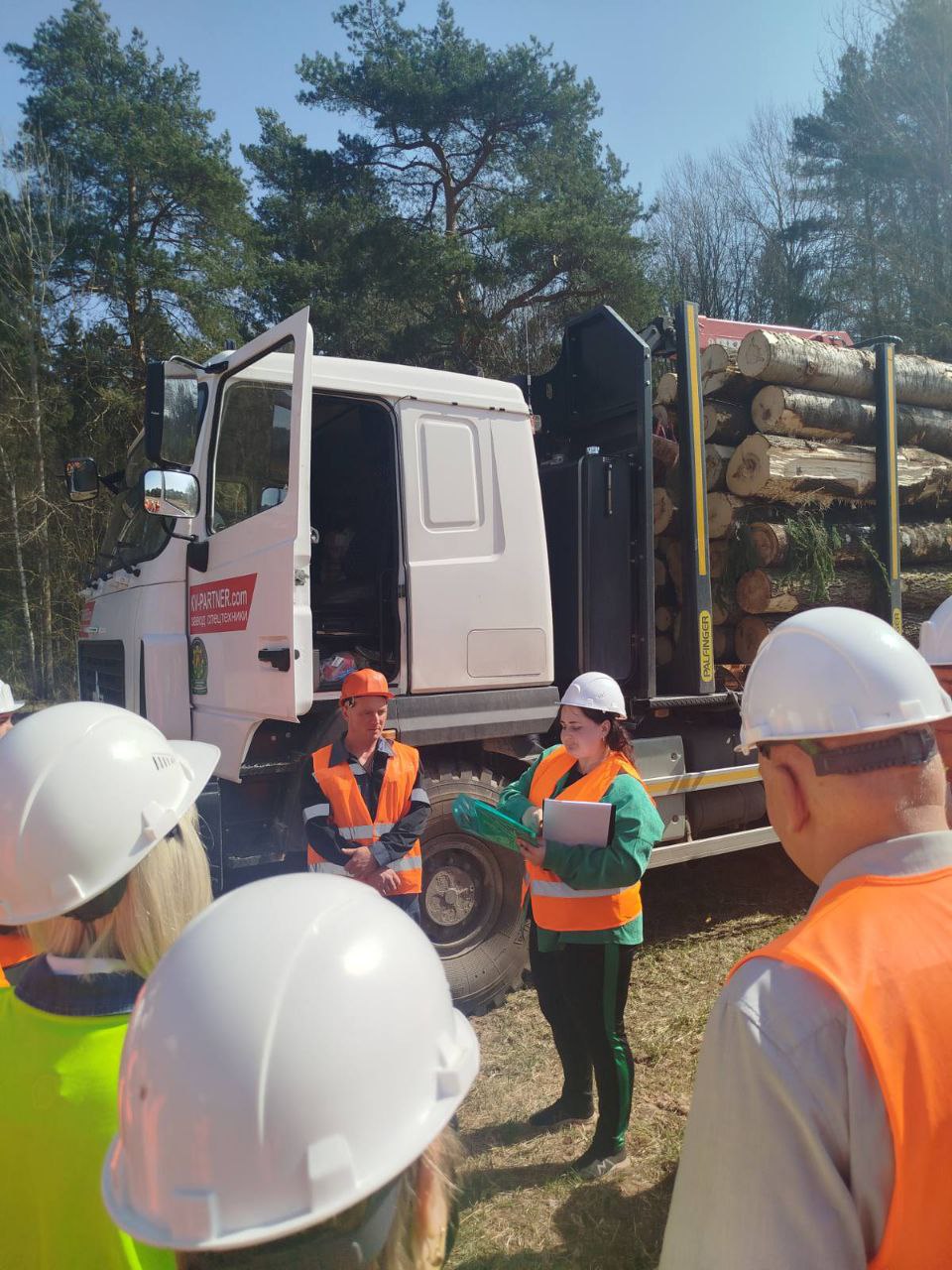 Участники семинара по охране труда переехали на делянку, где обсудят основные требования к складированию лесоматериалов, осмотрят перечень документов, которые при себе должен иметь водитель при вывозке леса, укомплектованность лесовоза к рейсу и др.