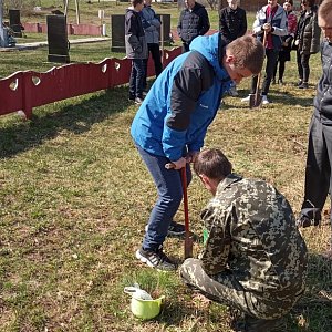 Не стоит забывать о воинских захоронения. С ребятами из Велешковичской СШ дополняли, созданную ими пару лет назад, небольшую аллею из сосен.